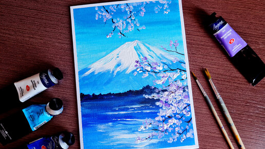 Японский пейзаж акрилом! Пошаговая инструкция.