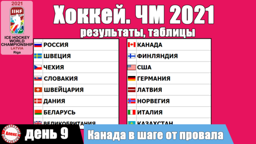 ЧМ по хоккею 2021. Итоги 9 дня. Таблицы, результаты, расписание.