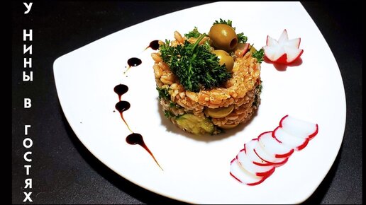 Салат с полбой киноа оливками и овощами