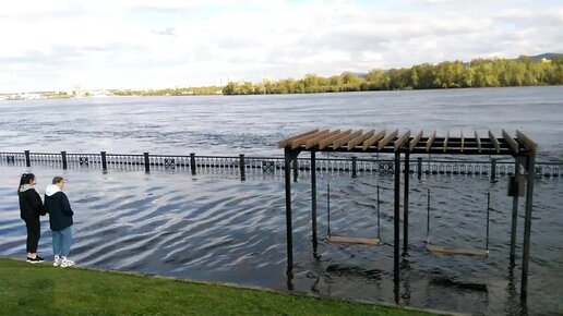 Затопленная левобережная набережная Енисея в Красноярске