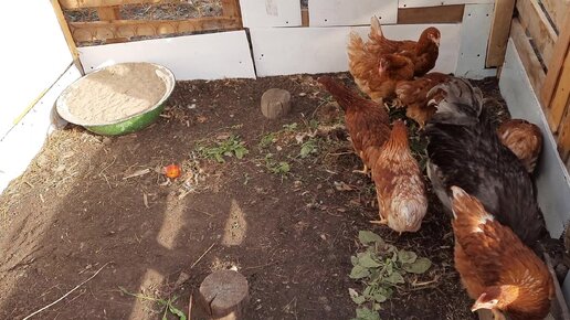 Утро в курятнике. Петух всех вывел на выгул. Вкусности!