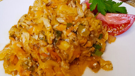 Молодая капуста с фаршем и овощами.