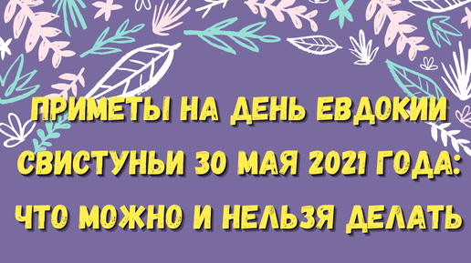 Евдокия Свистуньи 30 мая 2021 года: что можно и нельзя делать.
