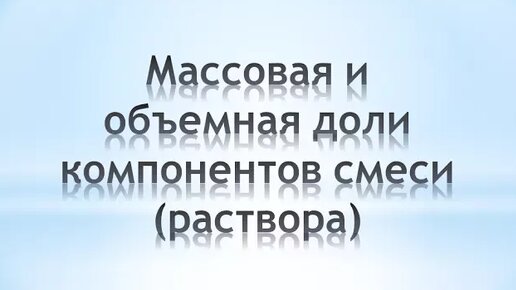 ЗАДАЧИ НА МАССОВУЮ И ОБЪЕМНУЮ ДОЛИ. ХИМИЯ 8 КЛАСС (часть 1)