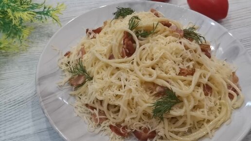 СПАГЕТТИ с сыром и беконом.Вкусно и просто.