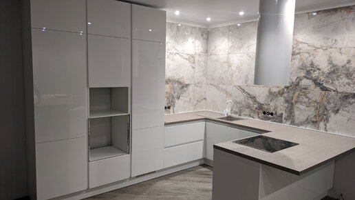ОБЗОР КУХОННОГО ГАРНИТУРА/без верхних шкафов,без ручек,с обеденной зоной.