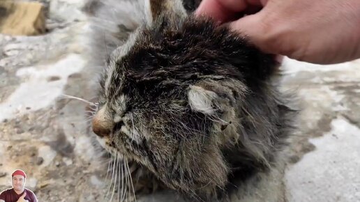Старый уличный кот просит чтобы его гладили