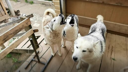 Стая хаски устроила скандал, после того как я их обругал и сказал, что буду их всех мыть.