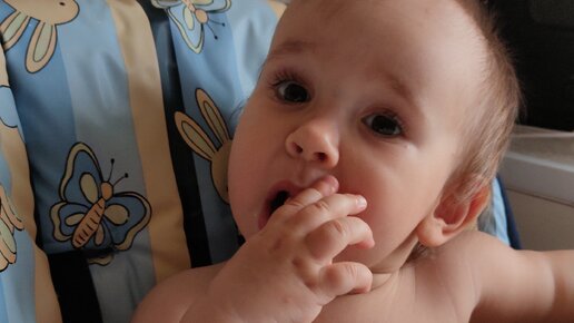 Кушает банан и кукурузные палочки. Научилась сама класть в рот, молодец 😍😇😇