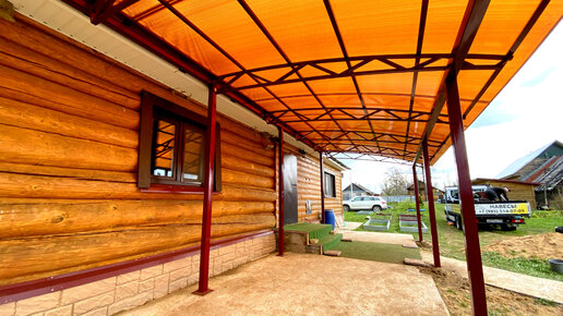 Навес из поликарбоната к дому 9х3,5 | Терраса к дому из поликарбоната