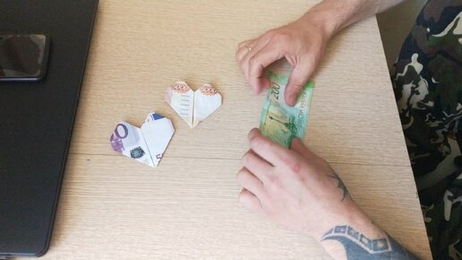 Сердце из денежной купюры - оригинальный подарок своими руками за 5 минут