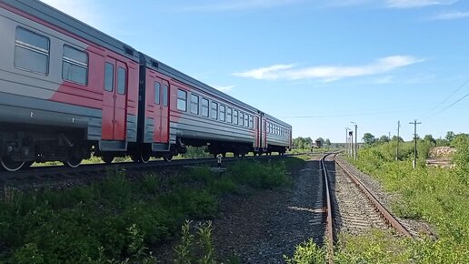 ТЭП70 с поездом Великая-Киров отправляется со станции Юрья