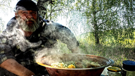 Поющее мясо на сковороде жариться так громко, что отгоняет шумом диких зверей за километры. Шумящая сковорода-отгоняйка