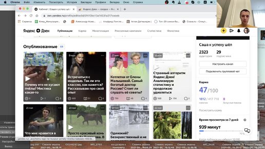 Моя неделя в Дзен: падение кармы и минут просмотров. 4 новых подписчика