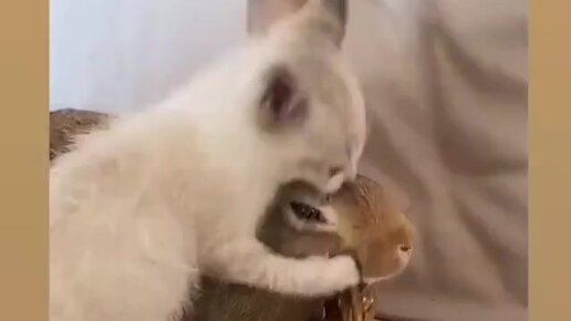 Жестокое нападения кота на кролика.