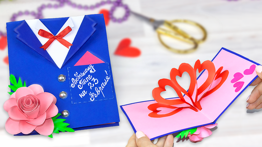 Открытка своими руками подарок Папе на 23 февраля в День Защитников Отечества