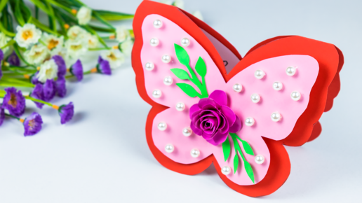 Открытка Бабочка на 8 марта своими руками. Как сделать подарок для мамы из бумаги