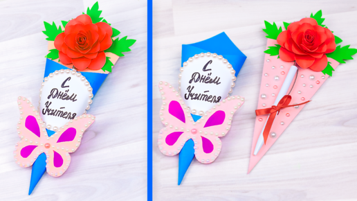 Открытка на День Учителя своими руками 🎁 Как сделать подарок из бумаги учителю
