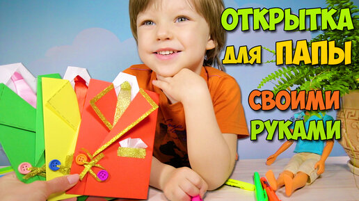 Открытка своими руками на 23 февраля ПАПЕ. Как сделать открытку КОСТЮМЧИК из бумаги?