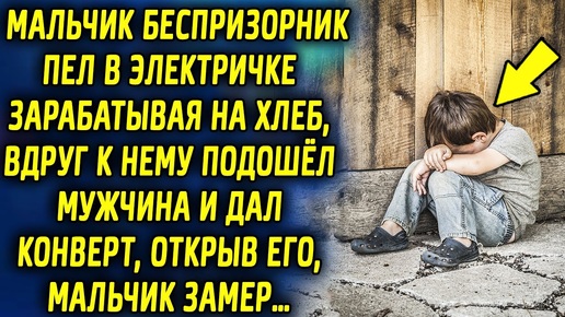 Беспризорник пел в электричке зарабатывая на хлеб, вдруг к нему подошёл мужчина и дал конверт, открыв его, мальчик замер...