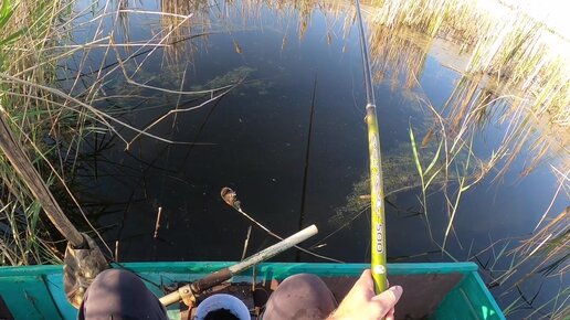 Ловля карася на удочку.Fishing for carp on a fishing rod.Angeln Karpfen auf eine.