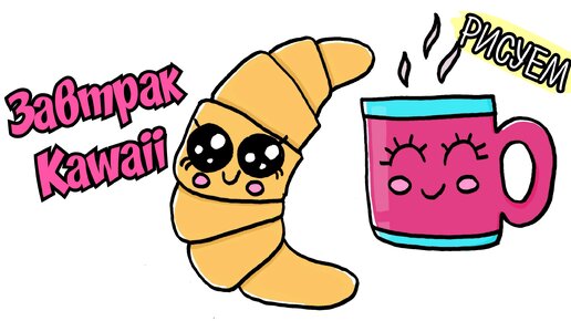 Милые рисунки /завтрак каваи/кавайная еда/круассан /чашка чая рисунок