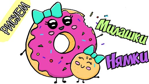 Как Нарисовать кавайный Пончик /Как Нарисовать Кавайные Сладости/рисунок пончик/мама и дочка рисунок/рисунок семья