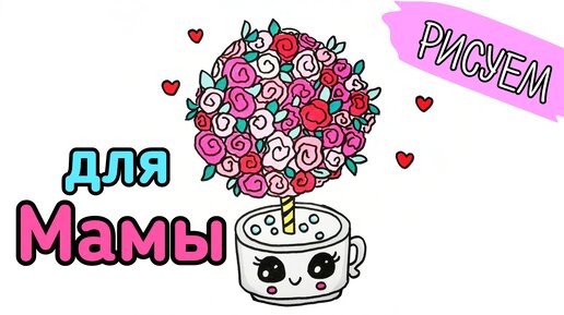 Рисунок для мамы/рисунок букет роз/букет цветов рисунок/кавайный рисунок для мамы