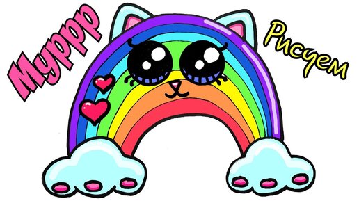 Милый рисунок радуга /как нарисовать кошку