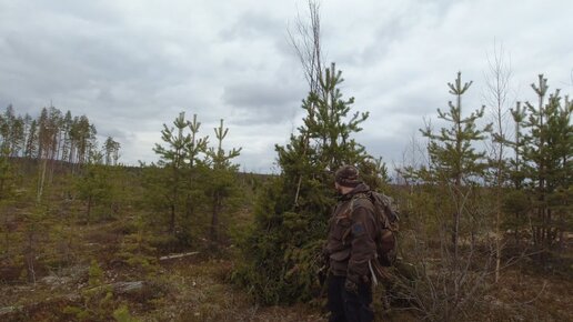 СТРОЮ ШАЛАШ В В ТАЙГЕ. ДЕЛАЮ УКРЫТИЕ ИЗ ВЕТОК ДЛЯ ОХОТЫ. ШАЛАШ НА ТЕТЕРЕВА. ОБНАРУЖИЛ МЕСТО ТОКА И СДЕЛАЛ СКРАДОК. ПРОМЫСЕЛ.