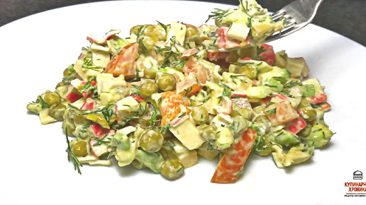 Салат Курортный роман с авокадо и крабовыми палочками.