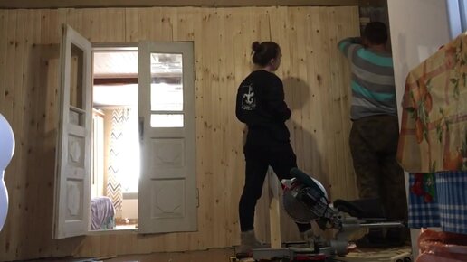Обиваем вагонкой стены и потолок. Занялись ремонтом второй комнаты.