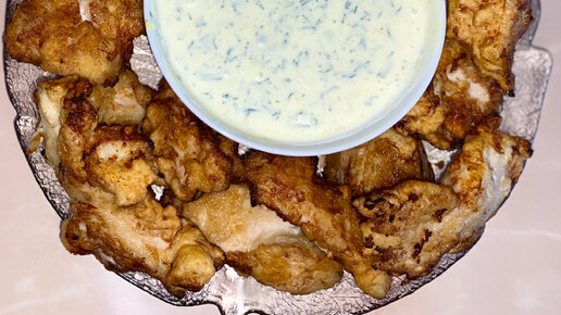 Куриные стрипсы с чесночным соусом.