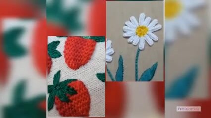 Объёмная вышивка. Клубничка и ромашки