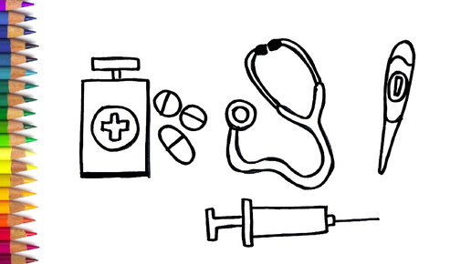 Как нарисовать набор доктора. Рисунок набор врача. Рисунки для малышей /РАСКРАСКИ РАЗВИВАШКИ/