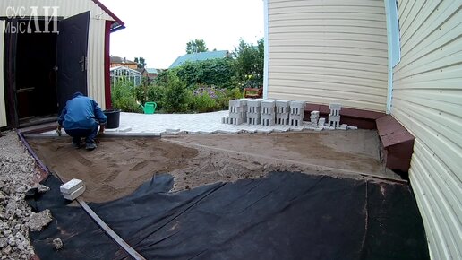 Продолжение укладки брусчатки.