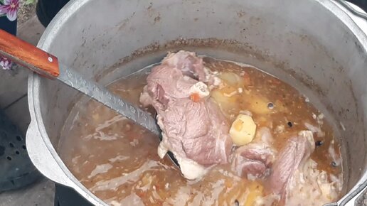 Готовлю туркменскую шурпу и заливаю ею догурму.