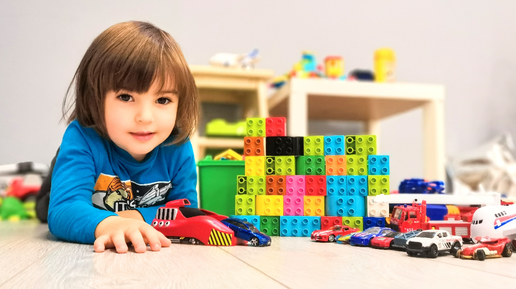 Малыш Лева играет с машинками и ЛЕГО