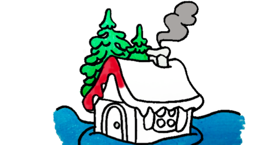 Как нарисовать Новый год. Раскраска Новогодняя. Рисунок Новогодний домик