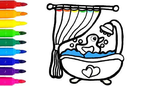 Рисунок ванна с уткой. Как нарисовать утёнка.