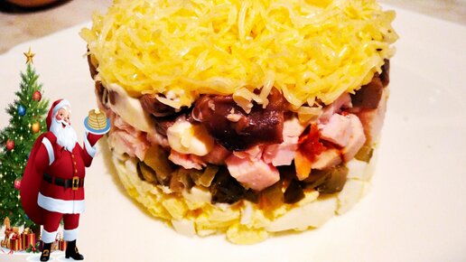 Вкусный Слоёный Салат с Копчёной Курицей на Новогодний Стол