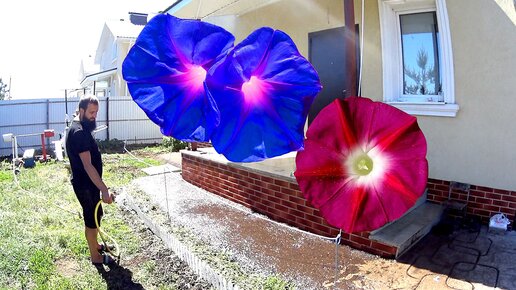 Занимаемся интерьером двора и сажаем цветы вьюны. Показываю и рассказываю что мы задумали.