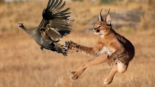 КАРАКАЛ — кот-прыгун, ОХОТНИК на птиц! Каракал ПРОТИВ шакалов. Интересные факты о каракалах.