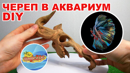 Мини аквариум для рыбки петушка. Или как сделать череп из мангрового корня. skull in aquarium. DIY.