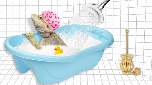 Купание ящериц. Как правильно купать бородатую агаму. Лайфхак с ромашкой.