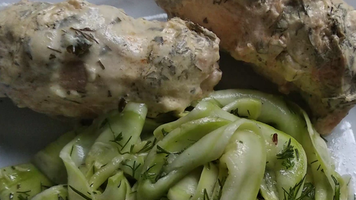 Рулетики из индейки с начинкой в духовке и пикантный салат.
