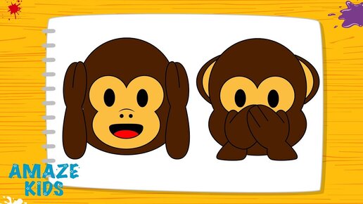 2 варианта как Нарисовать Емодзи Обезьянку для Детей. Уроки Рисования