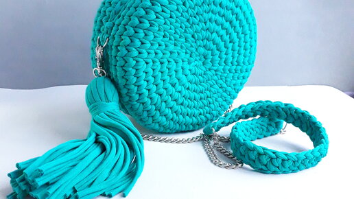 Круглая сумка вязанная из трикотажной пряжи крючком. Часть 1.