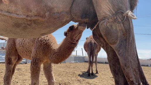 Верблюжонок пьет молоко