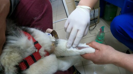 Поездка с хаски в ветеринарную клинику, сдавать кровь на анализ.